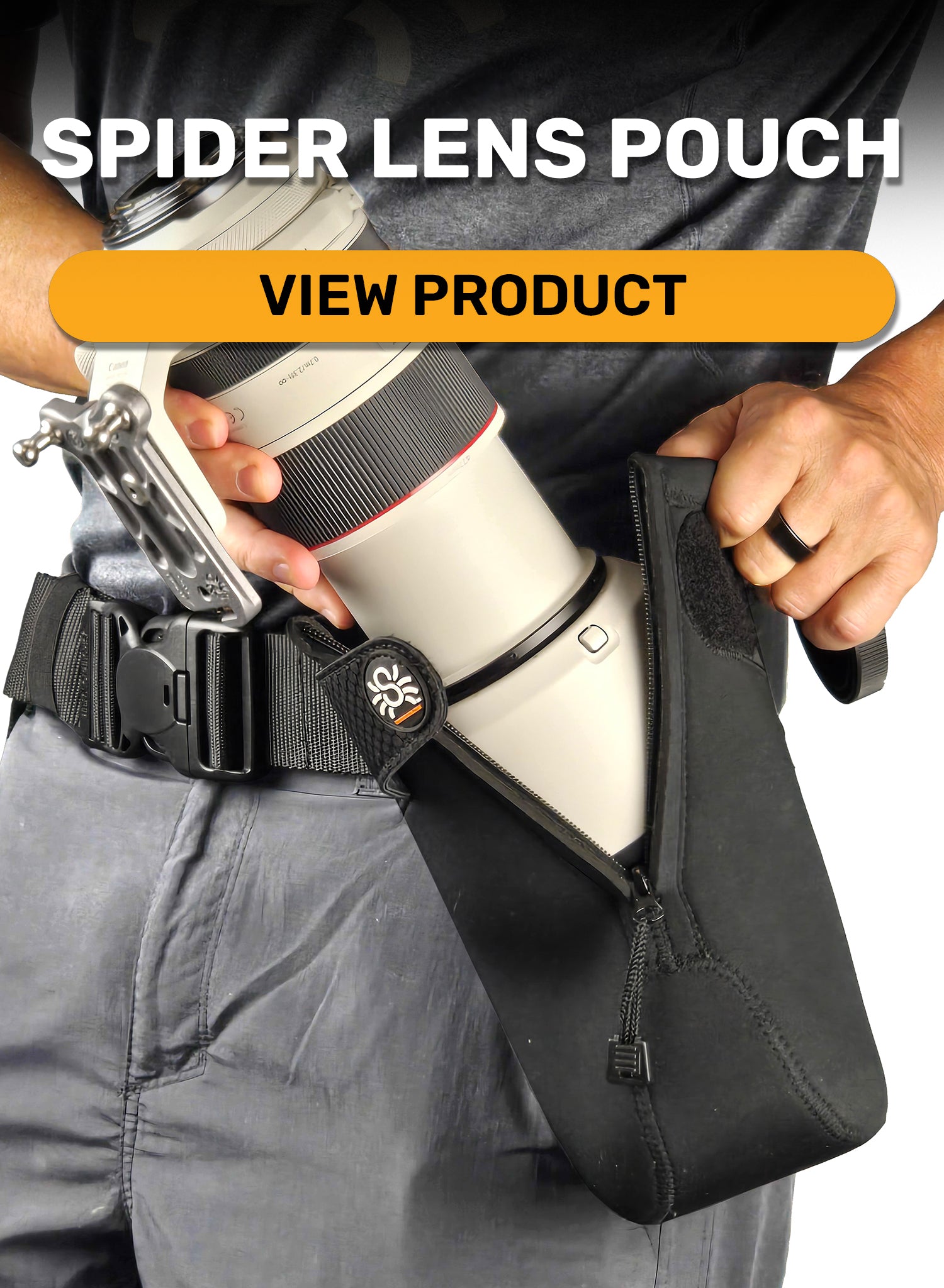 - Spider belts are designed to allow you to ergonomically carry 1-to-2 cameras at once, along with various additional gear (Lens Pouches, Water Bottles, Flash, Battery Pack, Gear Pouches, etc. etc.)