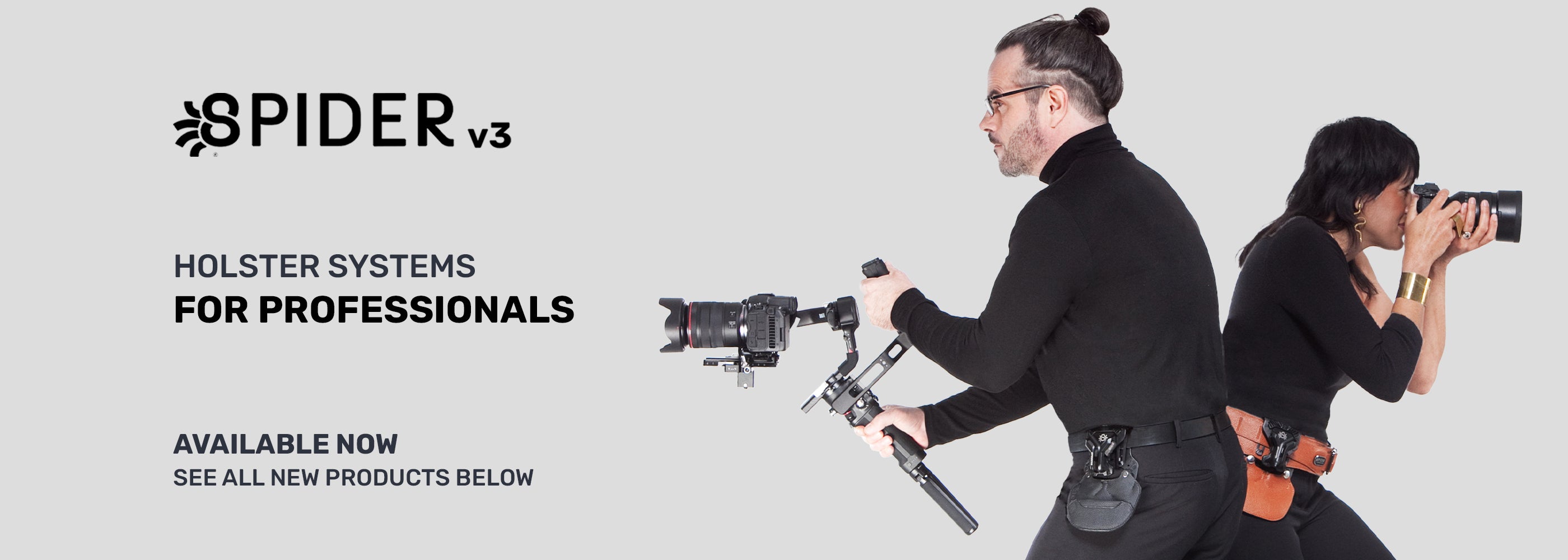 Spider Holster is designed to be compatible with all professional DSLR and Mirrorless cameras.