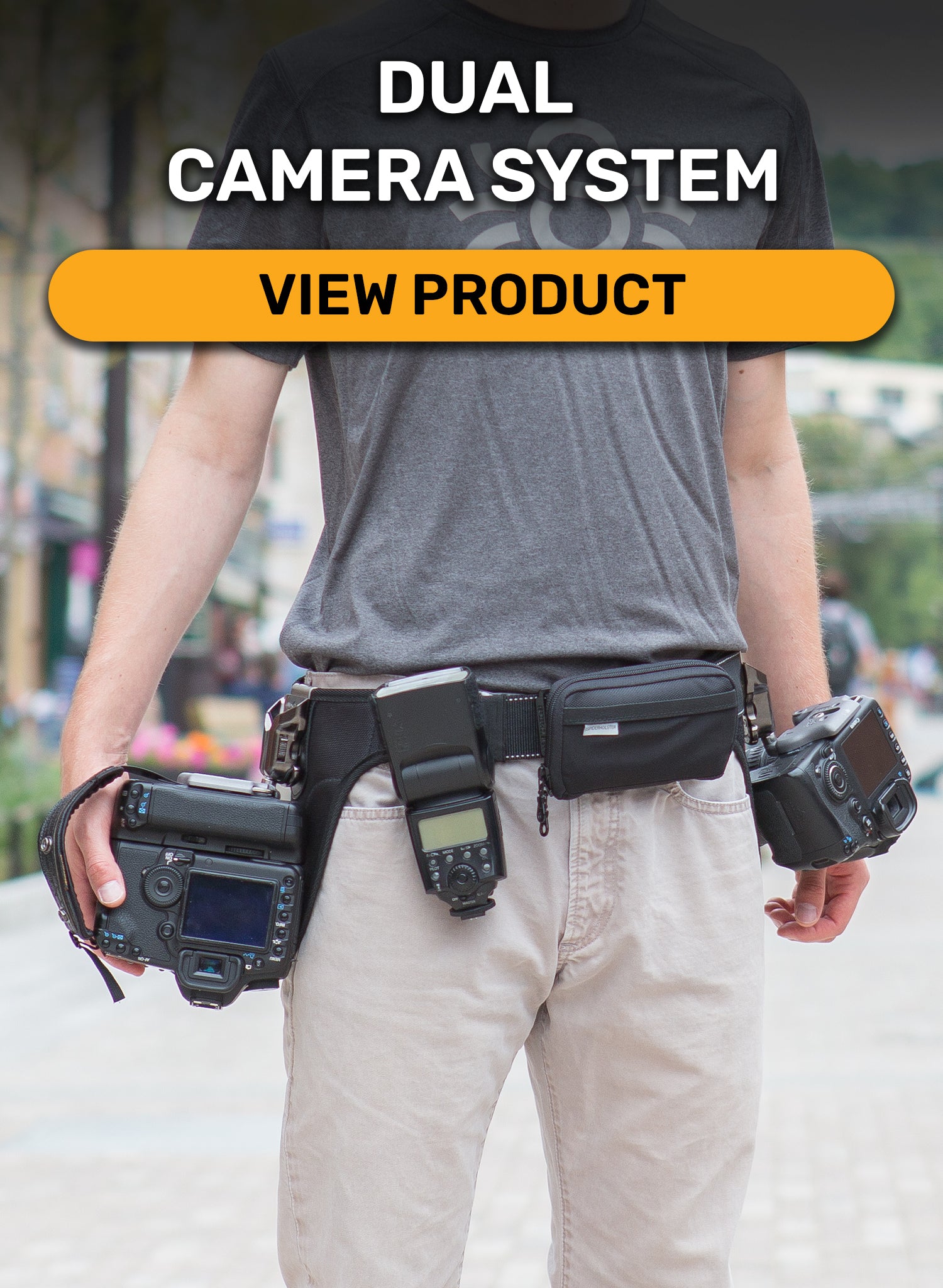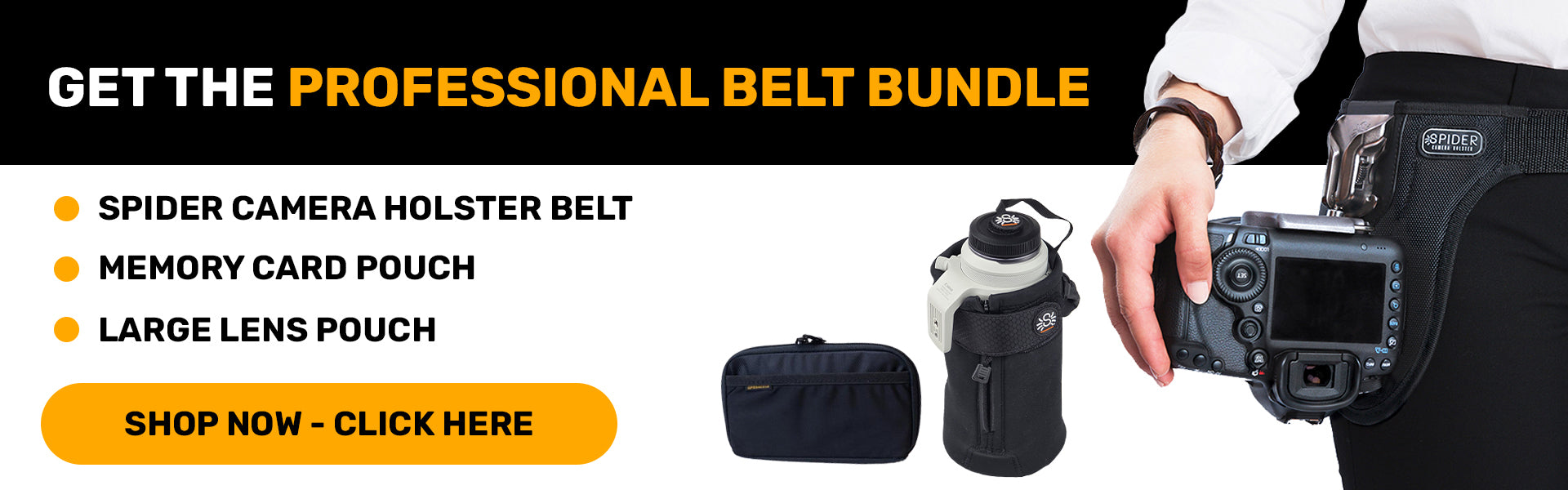 - Spider belts are designed to allow you to ergonomically carry 1-to-2 cameras at once, along with various additional gear (Lens Pouches, Water Bottles, Flash, Battery Pack, Gear Pouches, etc. etc.)