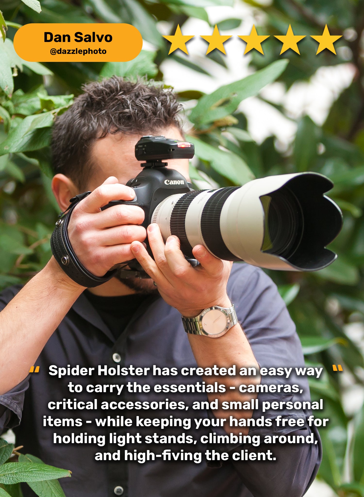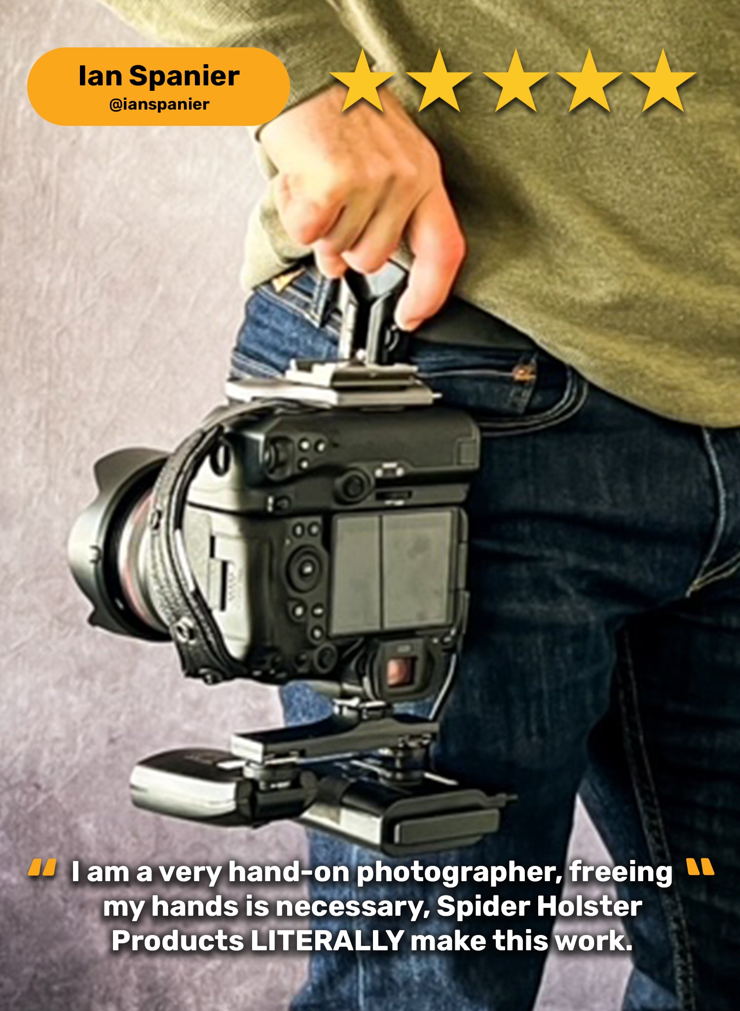 - Whether you are using the Spider X camera holster clipped directly onto your belt, or attached with our backpack adapter to your bag strap, rest assured the holster will hold whatever you place onto it.