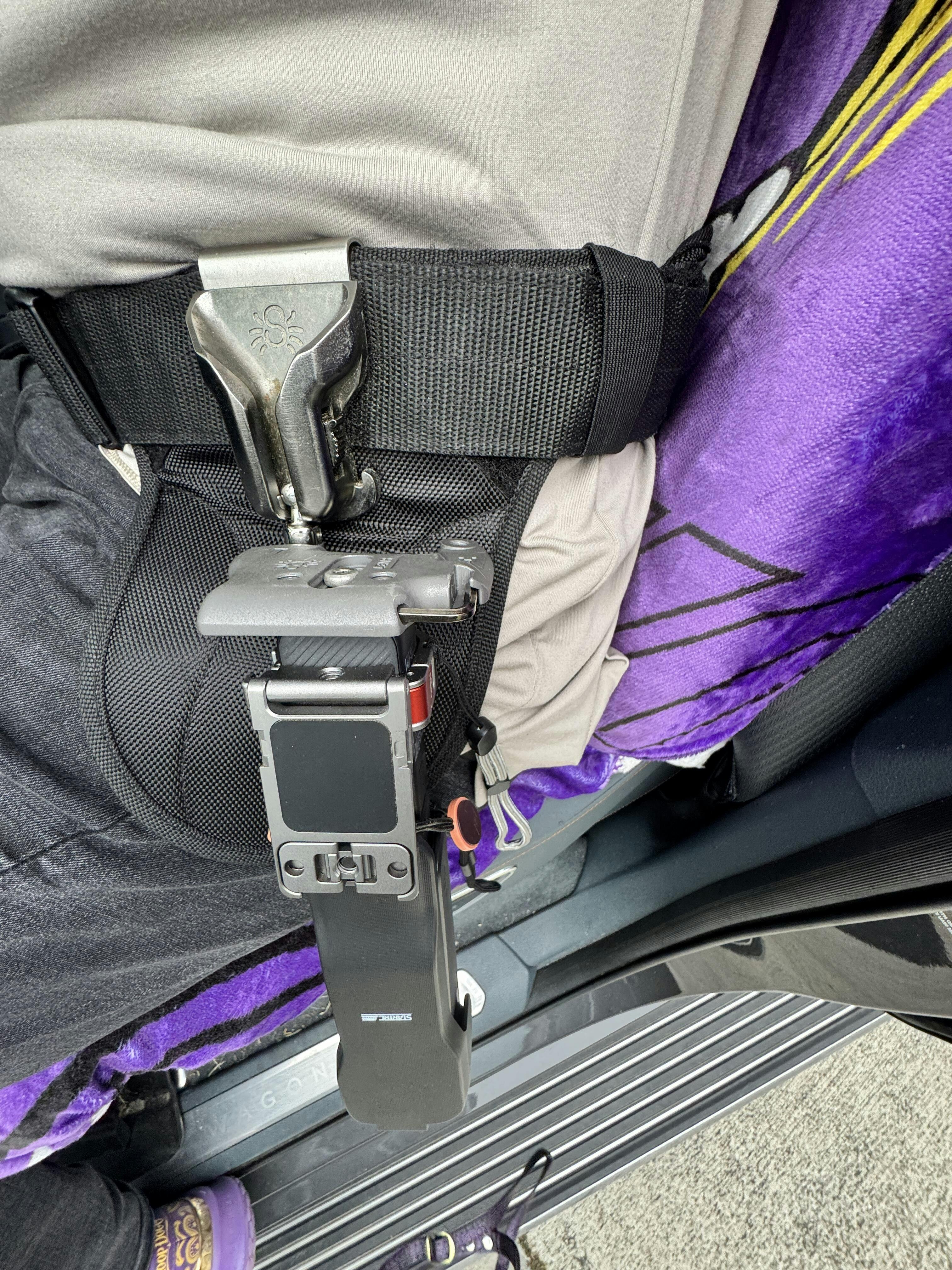 The belt can be easily adjusted to the user’s belt size by lifting the high-strength Velcro strap, and sliding the camera pad to sit comfortably on the hips. There is also a quick-adjust strap near the buckle that can be used to quickly tighten / loosen the belt slightly on the go.